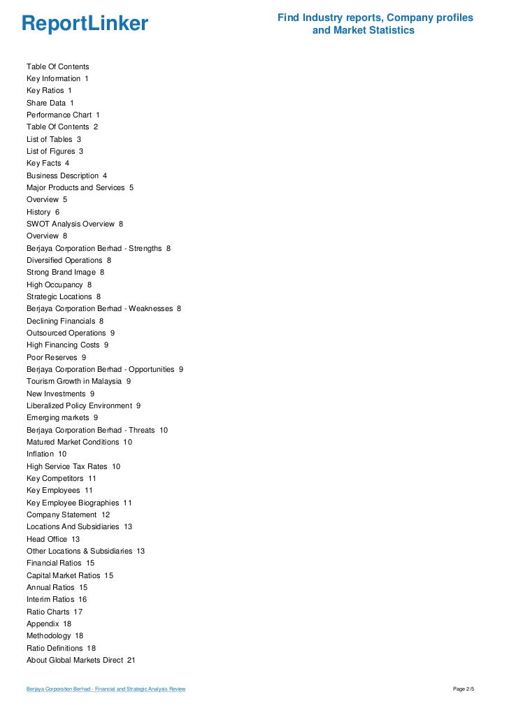 Investment development rental and management of properties. Berjaya Corporation Berhad an investment holding company engages in the provision of financial services. Get this Report Now by emailBerjaya Corporation BerhadPublished on March 2010 Report SummaryDatamonitors Berjaya Corporation Berhad - SWOT Analysis company profile is the essential source for top-level company data andinformation.