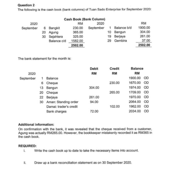 Solved Question 2 The Following Is The Cash Book Bank Co Chegg Com